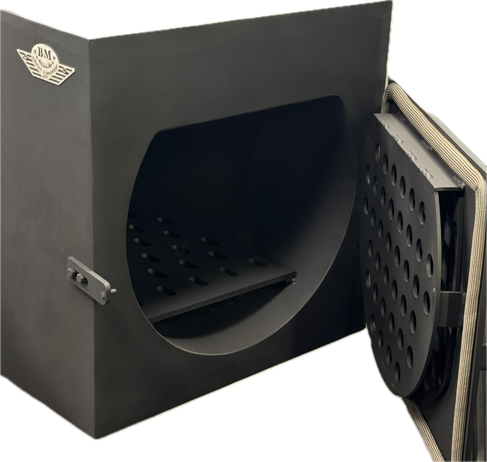 - Heavy-duty 5mm-thick steel plate construction with a heat-resistant paint finish.