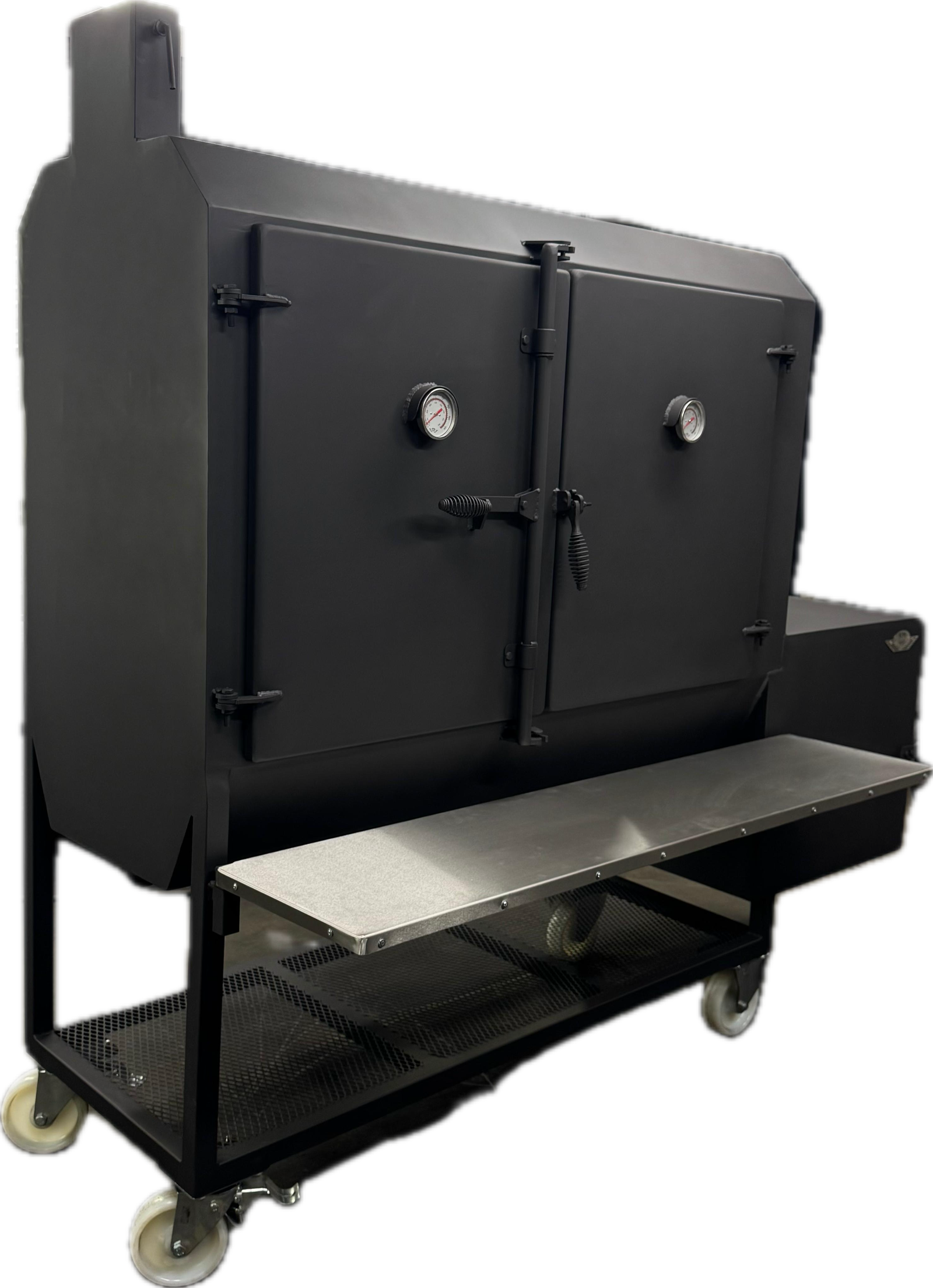 It’s a unique commercial-size vertical offset smoker, fully functional bbq cooking machine made in heavy-gauge steel, so it’s armed for durability, finished in heat-resistant paint, and looking great…